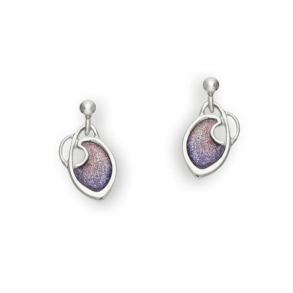 Angelic small drop earrings inspired by the works of Archibald Knox, crafted in sterling silver and enhanced with hot glass enamel.