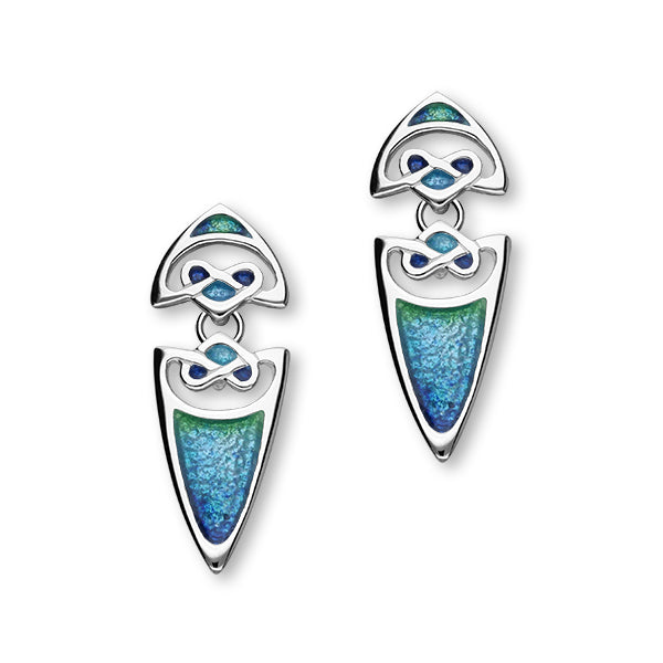 This stunning Archibald Knox earrings in aquamarine enamel are double drop earrings with a stud fitting to compliment our stunning EP471 pendant.