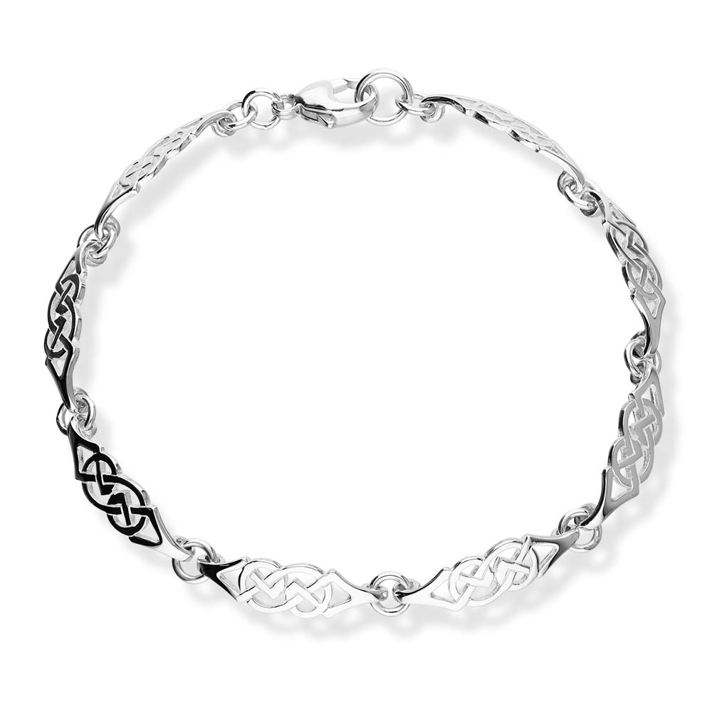 A popular full design Sterling Silver bracelet, featuring 9 identical links with a delicate Celtic knot work design.