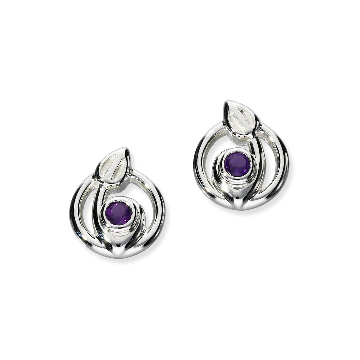 Charles Rennie Mackintosh Silver Earrings CE201 Amethyst
