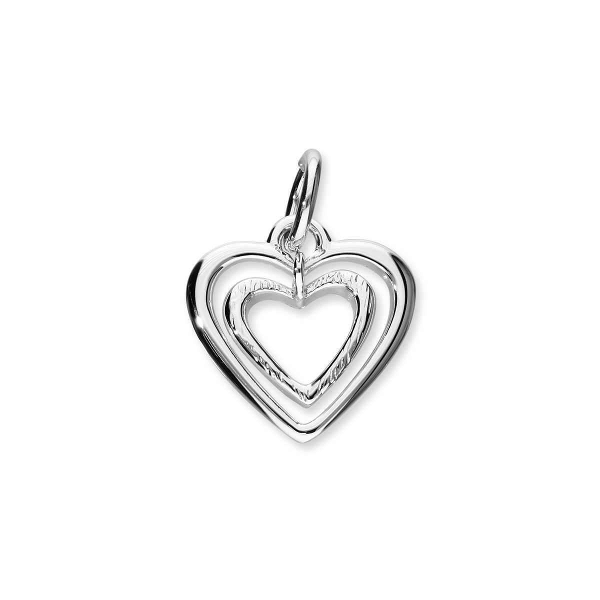 A heart within a heart from our 'Passion' collection is a mixture of polished and textured silver offering a stylish and unique finish to this romantic design. This charm fits any Universal charm bracelet.