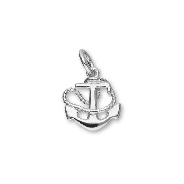 Traditional Sterling Silver charm featuring a classic Anchor and rope design.