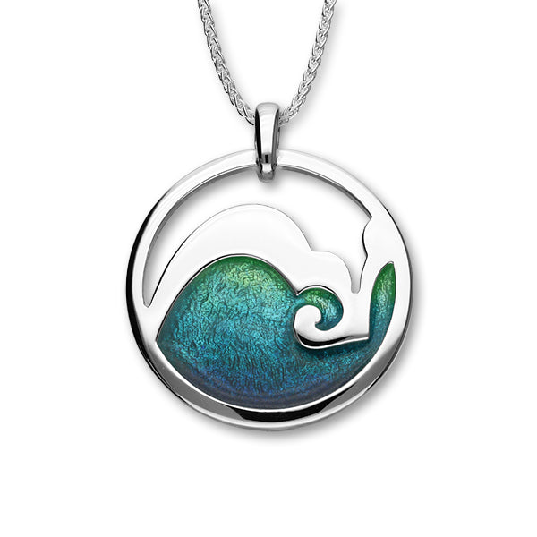 This sterling silver pendant from our 'COASTAL' collection is hand enamelled with shaded aquatic colourings.