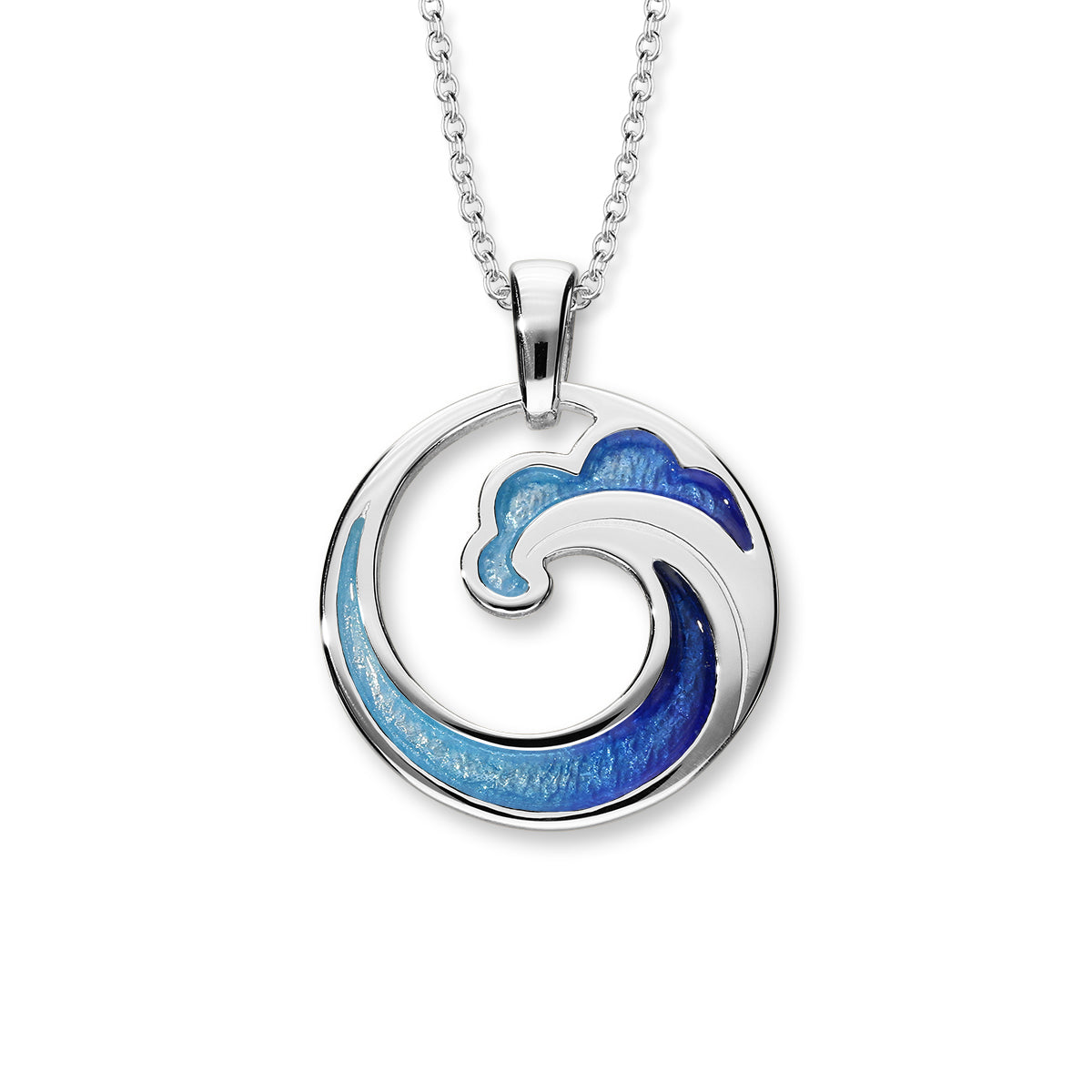 The aquatic colours used in this 'COASTAL' pendant capture the rolling waves familiar to our coastlines, created in sterling silver and hand enamelled.