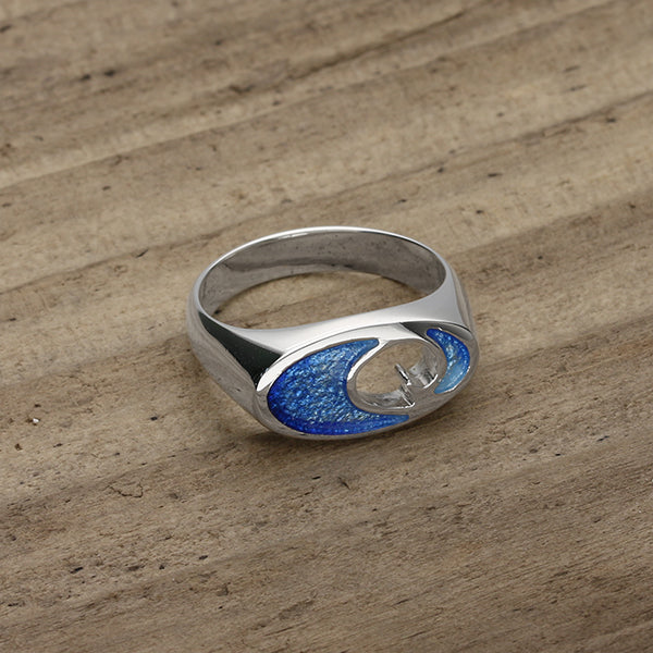 This sterling silver ring from our 'Coastal' collection captures the rolling waves around our coastlines and is hand enamelled with aquatic colourings. Alternative colours are available.