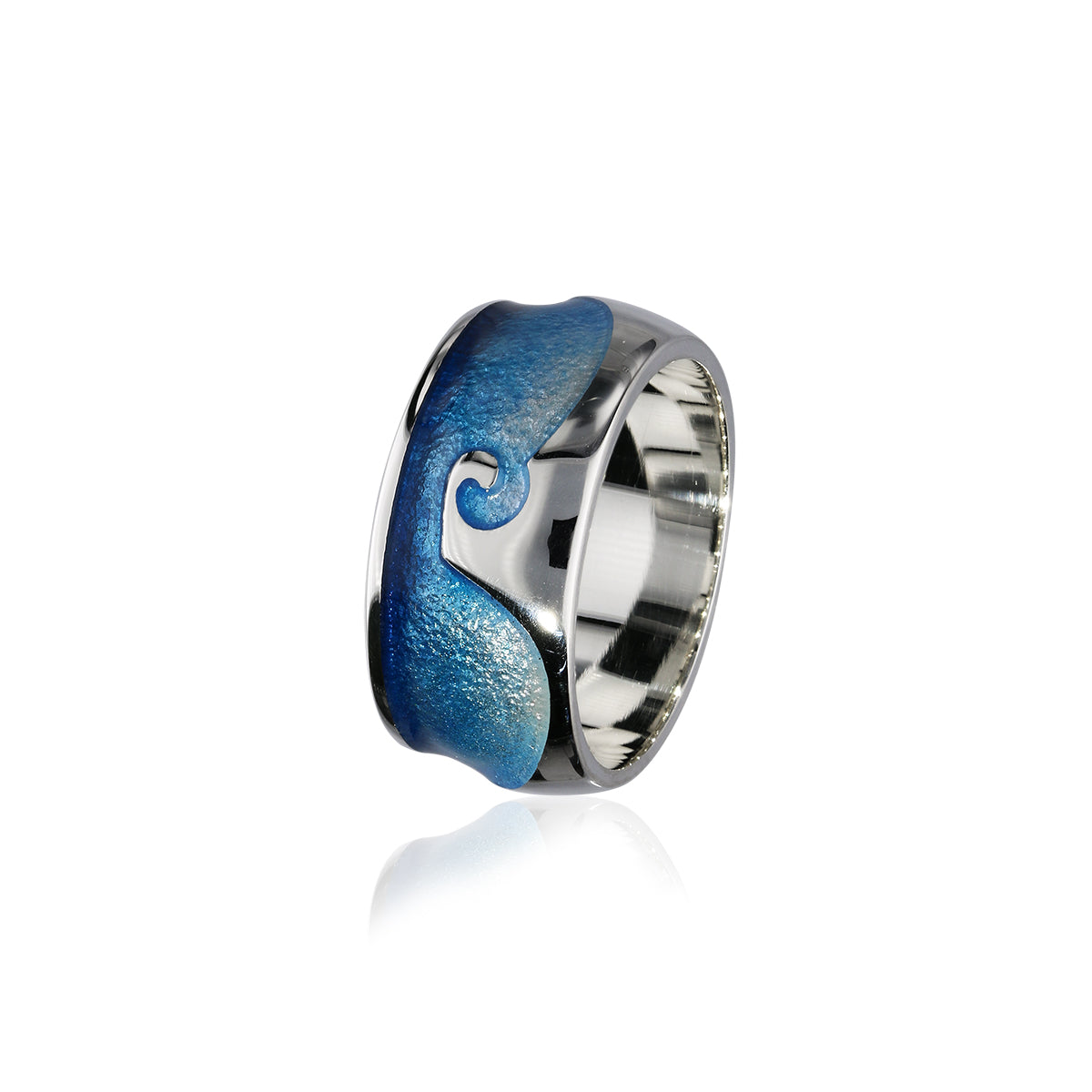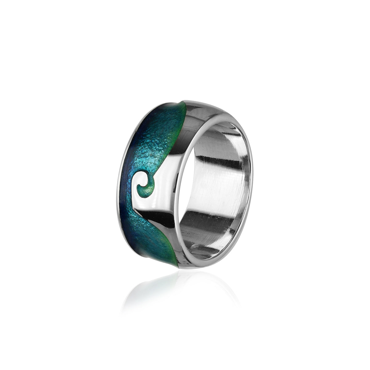 This sterling silver ring from our 'Coastal' collection is hand enamelled with shaded aquatic colourings. Alternative colours are available.