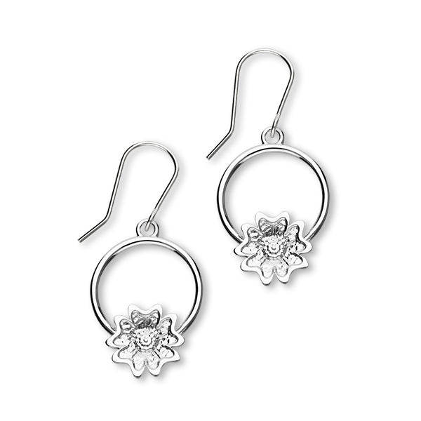 Attractive Scottish Primrose drop earrings handcrafted in sterling silver.