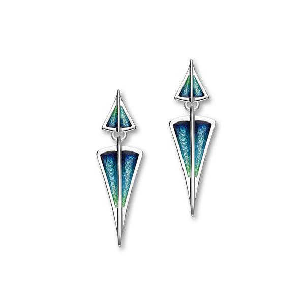 Eye-catching drop earrings, crafted in Sterling silver and enhanced with Hot glass enamel in the colours of Aqua Marine.