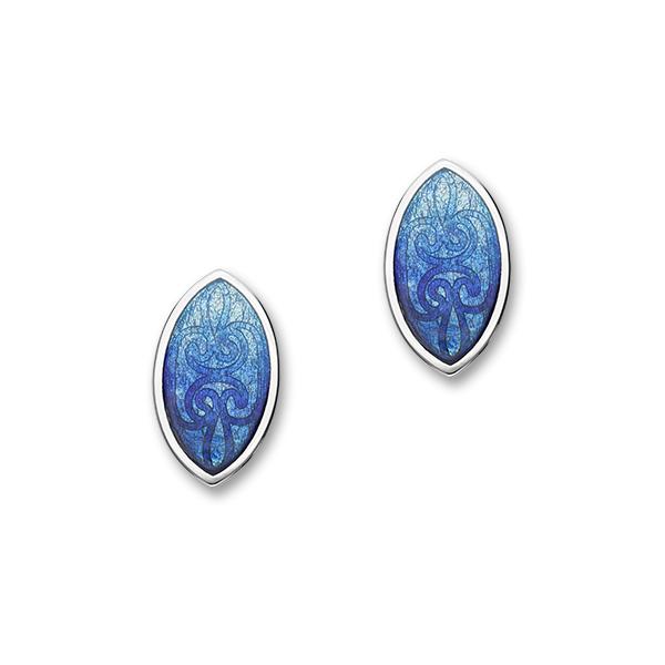 These sterling silver stud earrings are inspired from Pictish Carvings found on the Pictish Symbol Stone in Abernethy in Perthshire. The design is hand enamelled in the colourings of Oasis.