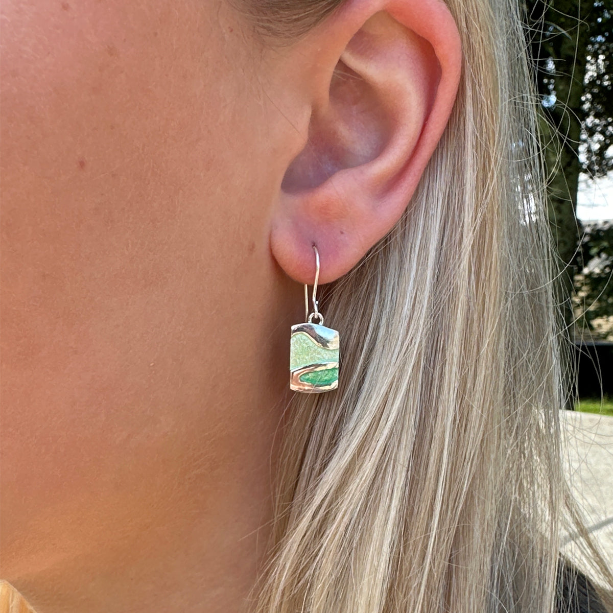 These short drop earrings from the 'Arizona' collection are available in sterling silver and complemented with hand enamelling.