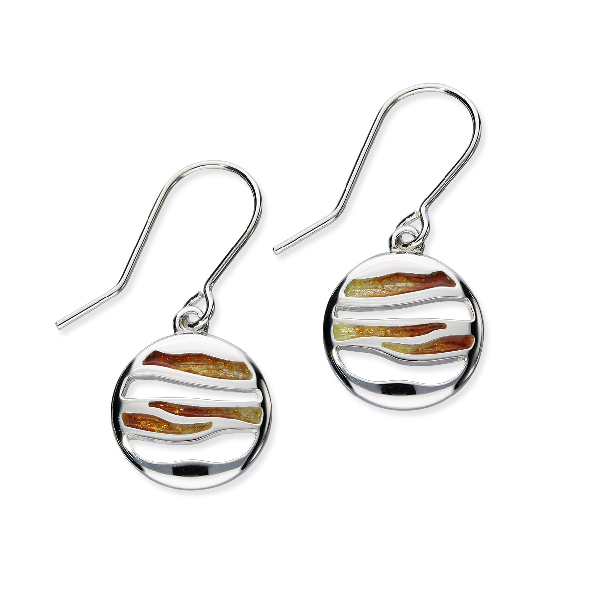 An elegant design of drop earrings, available in sterling silver and hand enamelled in aquatic colours