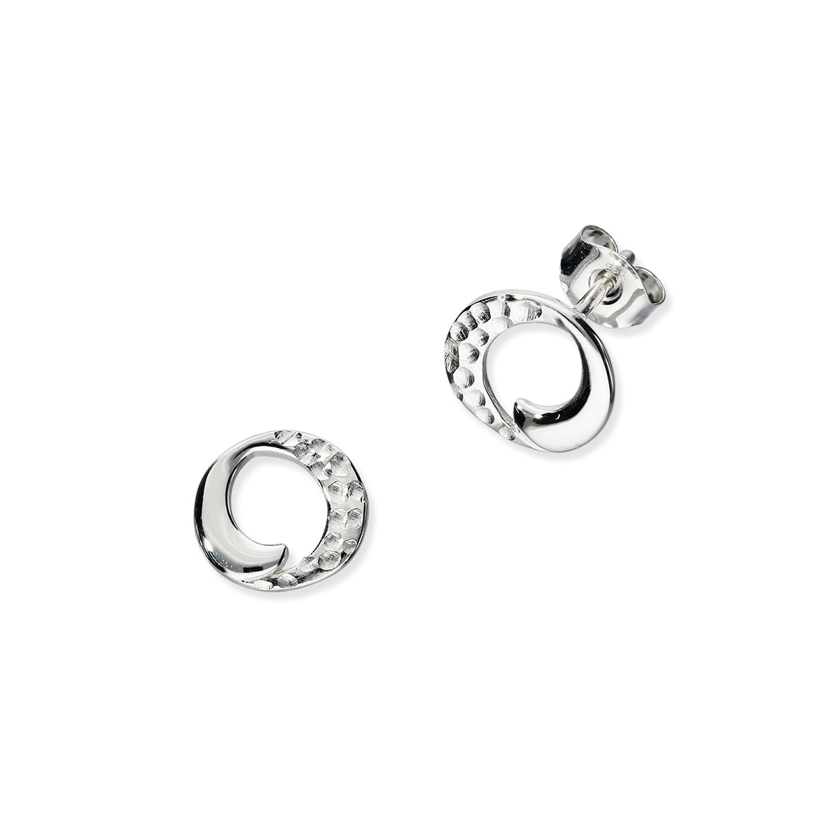 Delicate stud earrings crafted in a combination of polished and hammered silver.