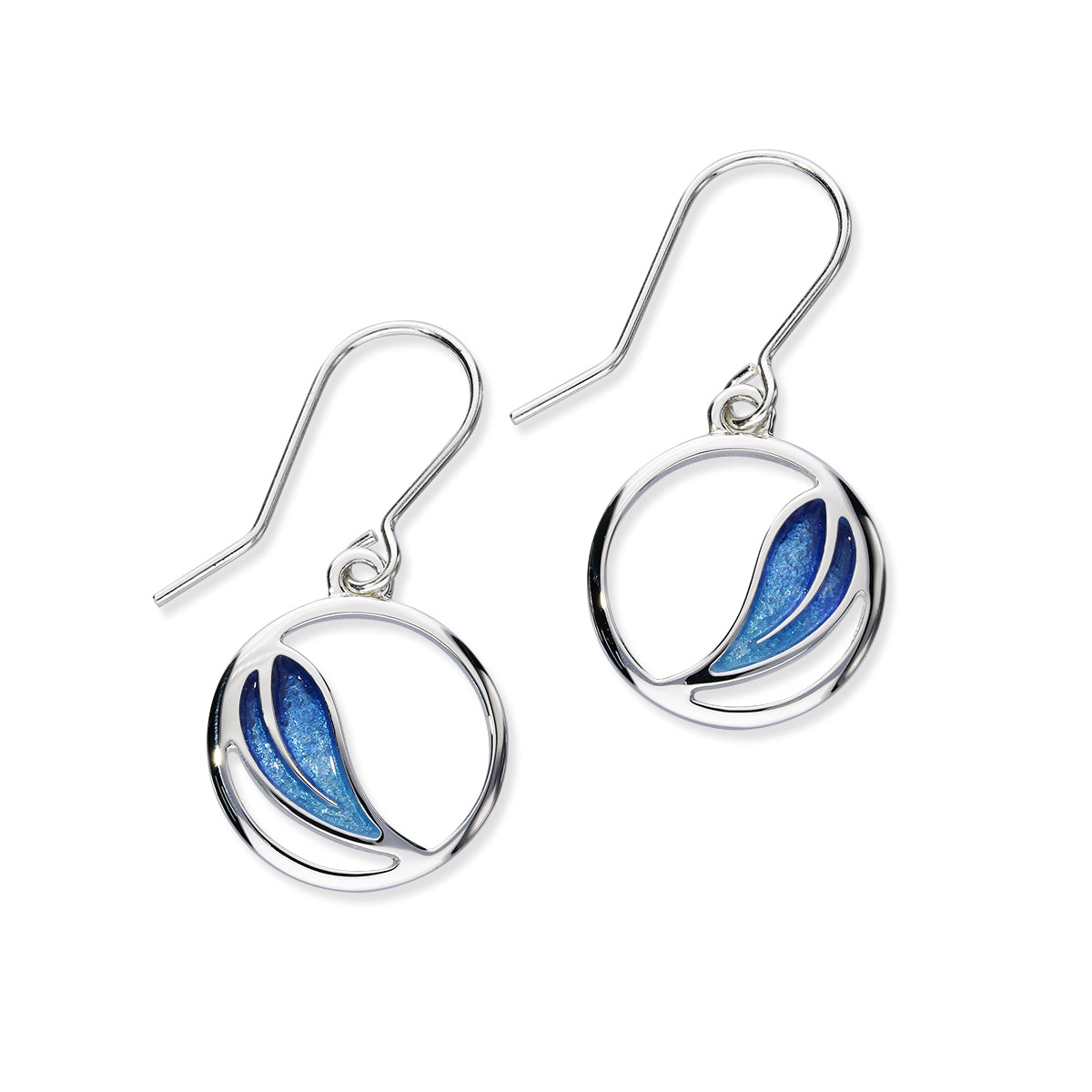 Elegant leaf drop earrings from our 'Cedar' collection are available in silver and complemented with our popular hot glass enamelling technique in the vibrant shades of Midnight Sapphire.