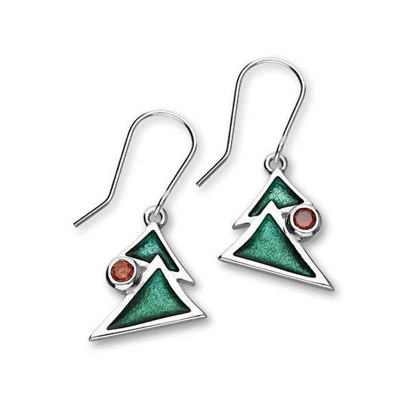 Festive Sterling Silver Cubic Zirconia & Enamel Christmas Tree Drop Earrings, ECE26