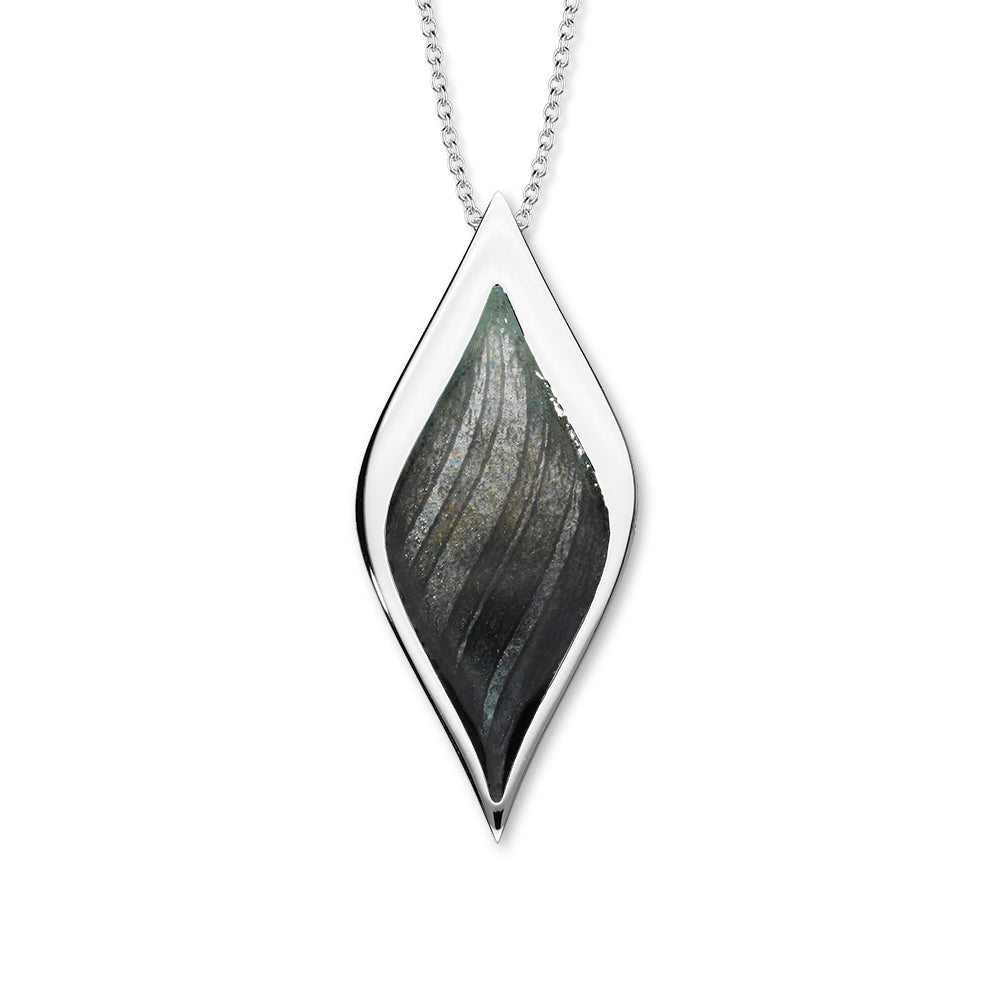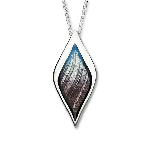 This eye catching pendant is crafted in sterling silver and has a textured background to enhance the effect of the hand enamelling in the vibrant colours of Charcoal.