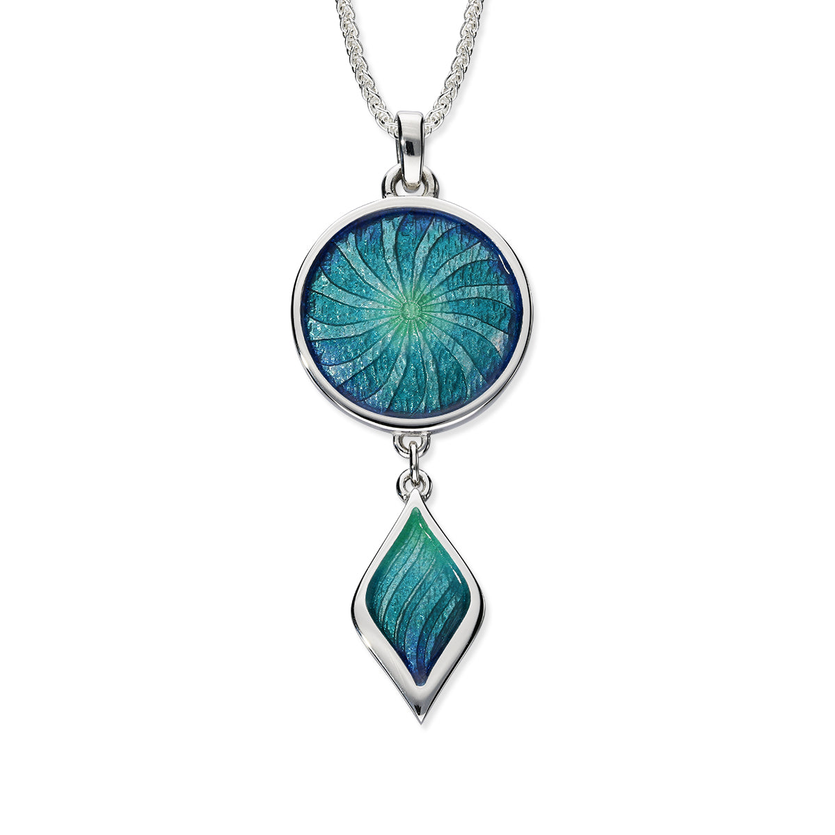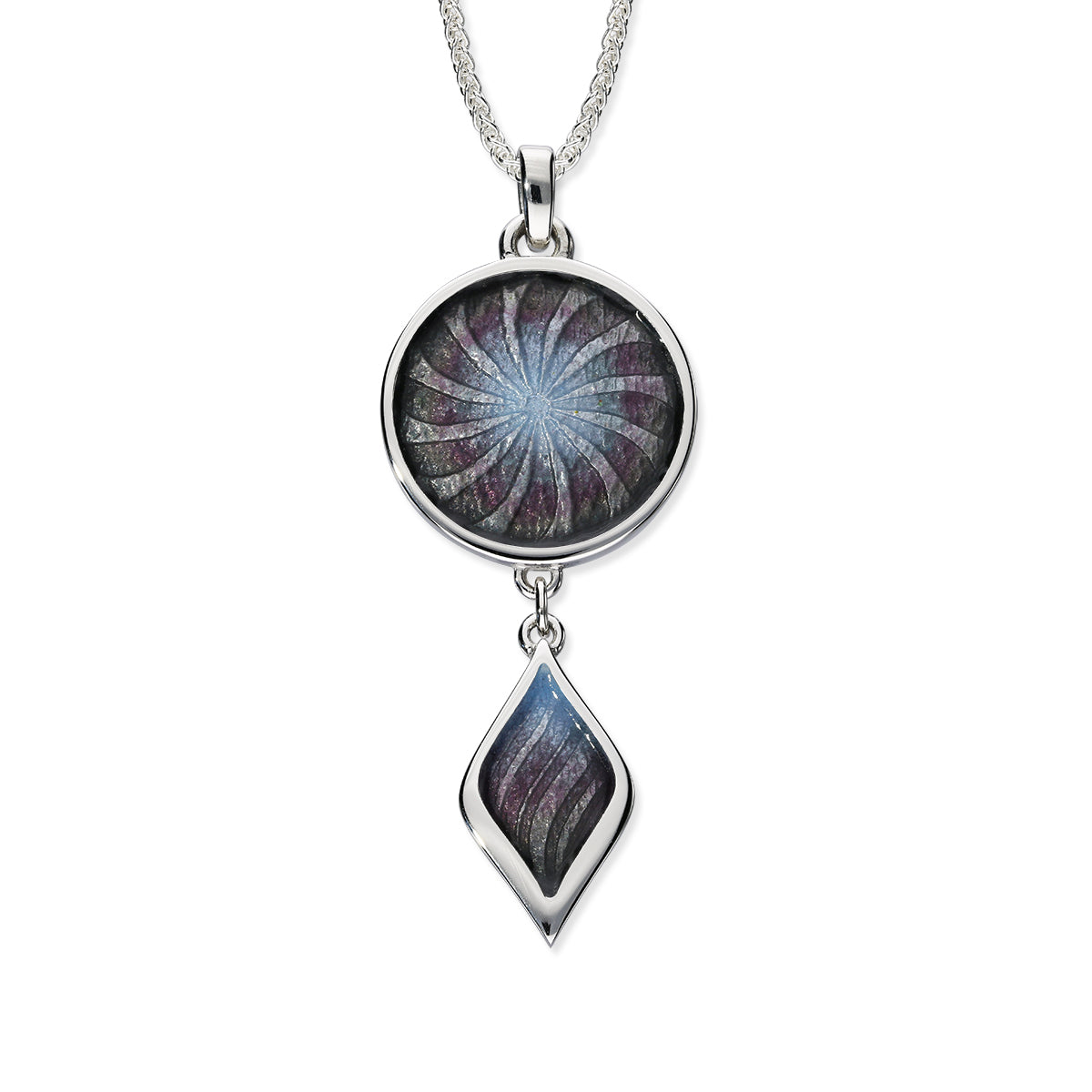 This elegant two tier pendant is available in sterling silver and both shapes have textured backgrounds to enhance the beauty of the hand enamelling in the viarious colourways.