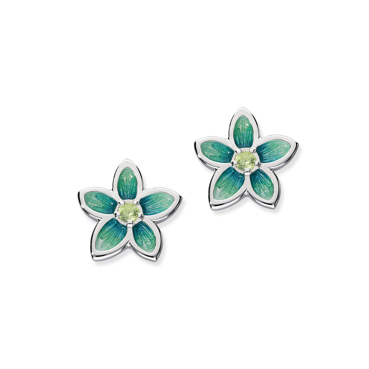 Delicate stud earrings in an elegant floral design, crafted in Sterling Silver and complemented with both Hot Glass Enamel and Yellow Cubic Zirconia stones.