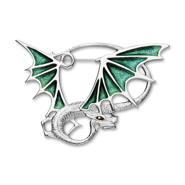 An all-time favourite brooch from the original 'Pat Cheney' the dragon brooch is hand enamelled in vibrant greens and blues.