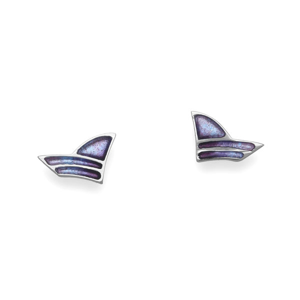 Dainty stud earrings from the original 'Pat Cheney' collection crafted in Sterling Silver and hand enamelled in the tranquil colours of Amethyst Bluebell.
