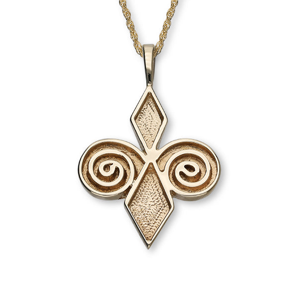 Traditional gold pendant featuring a design found in the stone age village of Skara Brae, Orkney.