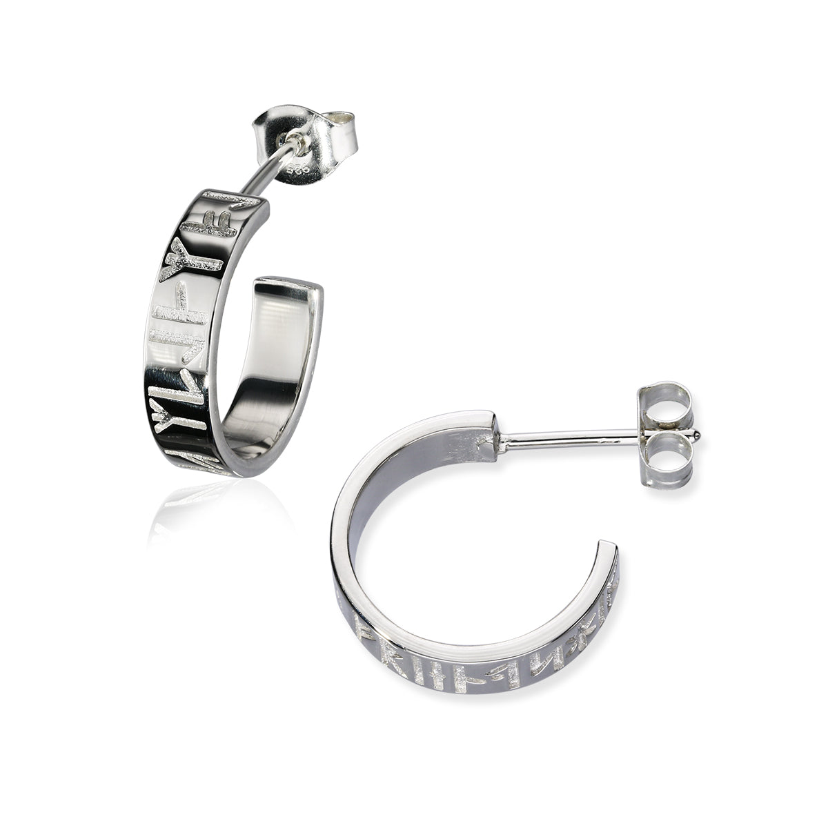Channeling the spirit of the ancient North, these sterling silver huggie hoops are etched with the words loyalty, and friendship in ancient runes. Compact yet striking, their snug-fitting design offers everyday comfort while adding a touch of heritage elegance.