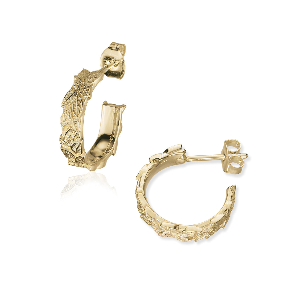 Spring Leaves 9ct Gold Hoop Earrings GE2260