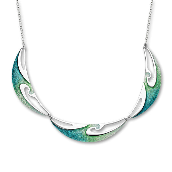 This stylish triple linked necklet is crafted in Sterling silver and hand enamelled using hot glass techniques in various colourways.