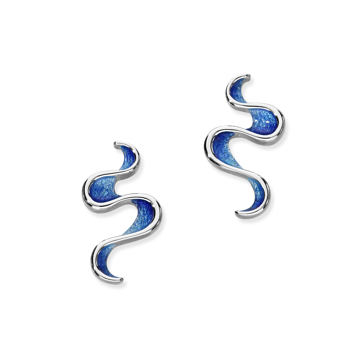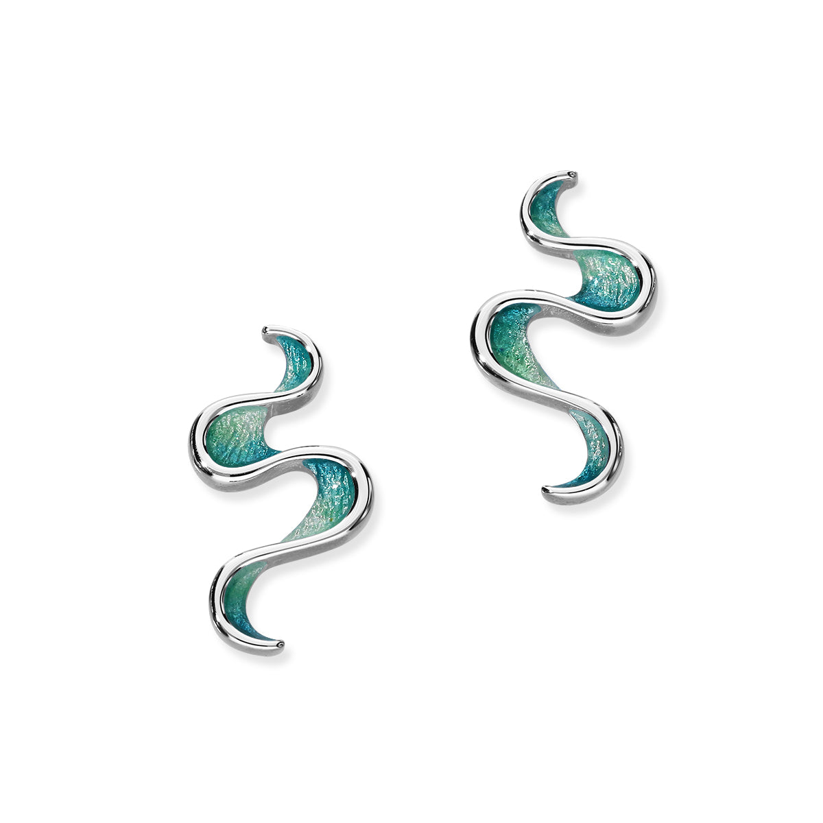 An attractive flowing design of long stud earrings, available in Sterling Silver complemented with Hot Glass Enamelling.