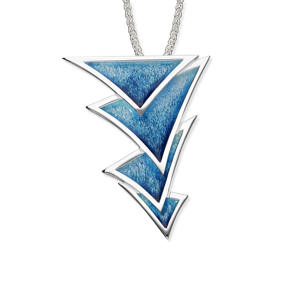 An elegant sterling silver pendant available in sterling silver and complemented with hand glass enamelling, shown in Waterfall colour way.