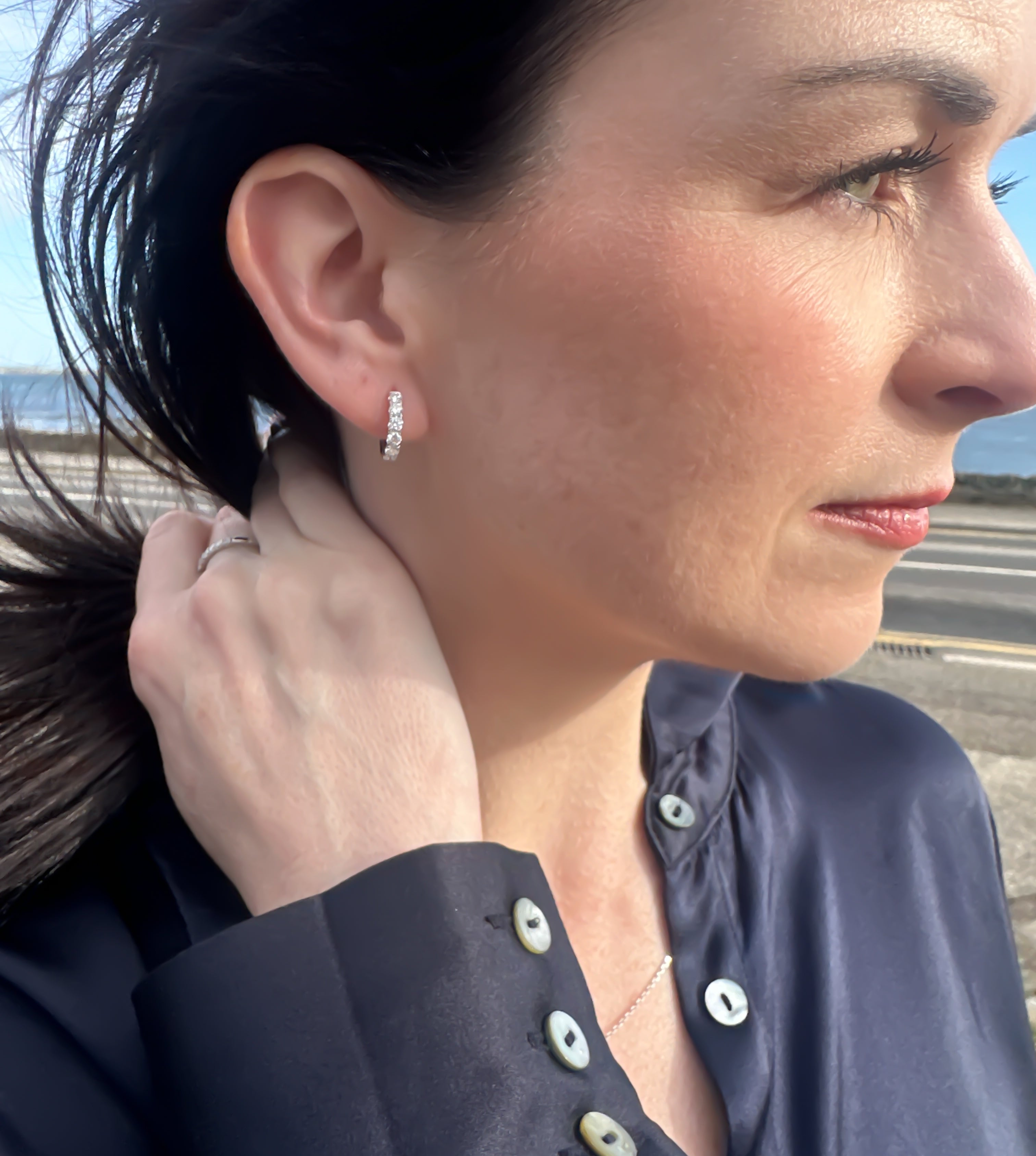 Crafted from 18kt white gold, these huggie style earrings feature 14 lab grown diamonds totaling 1ct in weight. A sophisticated and sustainable choice, the perfect accessory for any occasion.