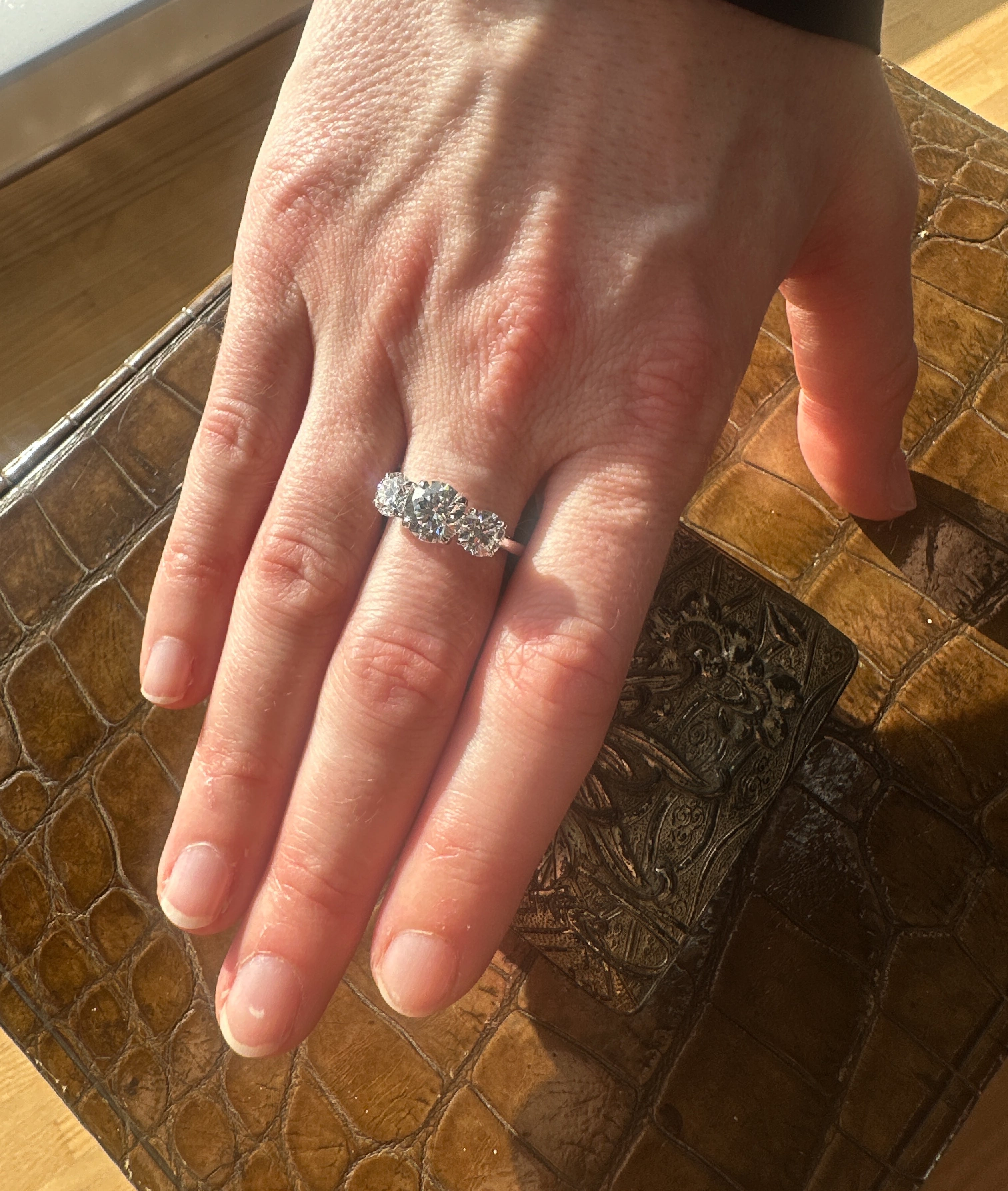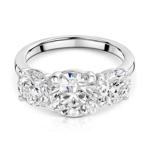 Expertly crafted with 18kt white gold, this lab grown diamond ring boasts a stunning trio of round brilliant diamonds totaling 3.00ct. With a large 1.5ct diamond at the center, flanked by two smaller diamonds, this ring radiates elegance and sophistication. Available in size M.