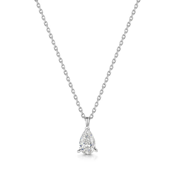 18kt White Gold Single Stone Pear Shaped Lab Grown Diamond Pendant - UDP1002