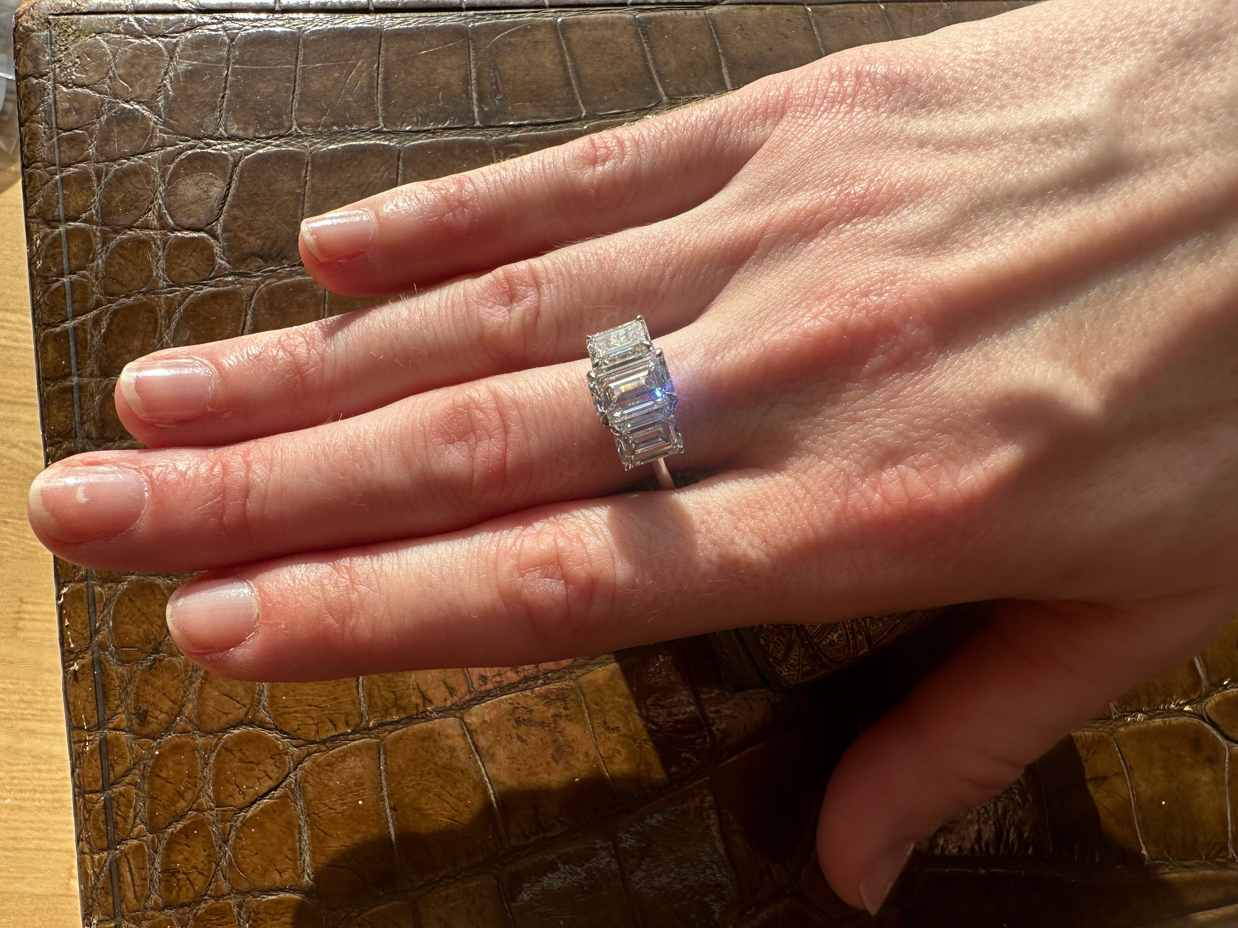 This elegant 3 Stone Emerald Cut Lab Grown Diamond Ring features a stunning 18kt white gold setting and 4.0ct of sparkling lab grown diamonds. Crafted with precision and expertise, this ring offers a timeless and sustainable choice for your special occasion.