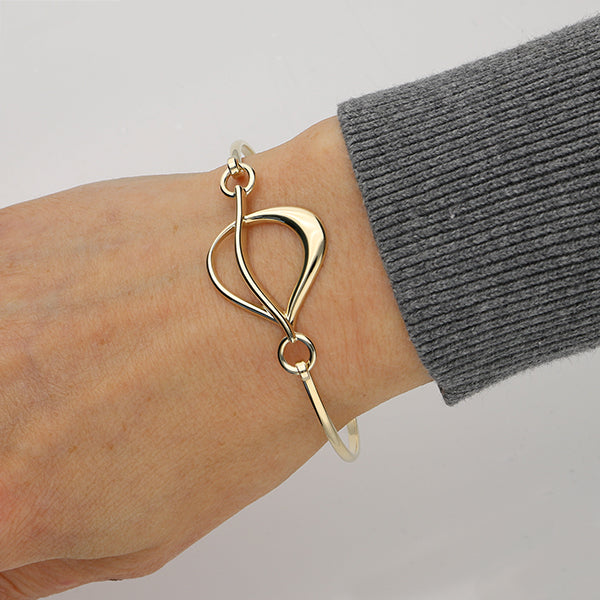 A stylish delicate designed bangle crafted in 9ct Yellow Gold, the intricate design is attached to a plain wire bangle.
