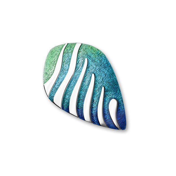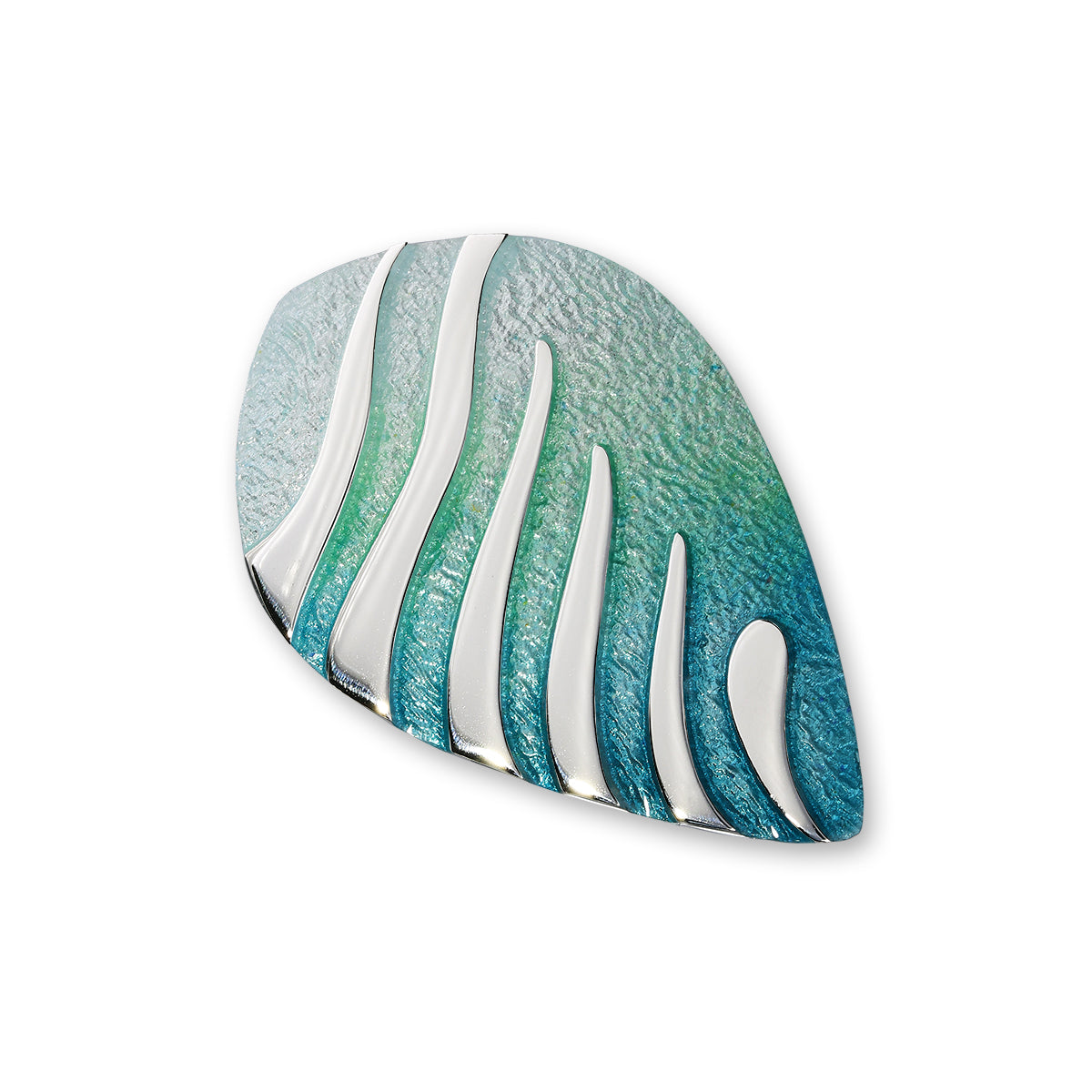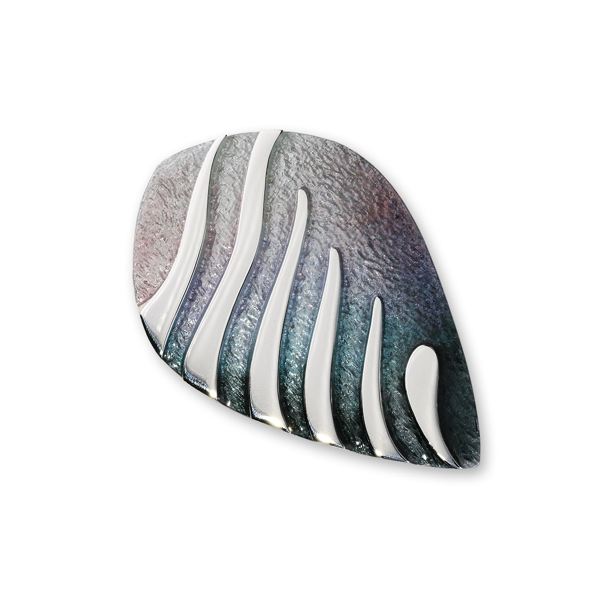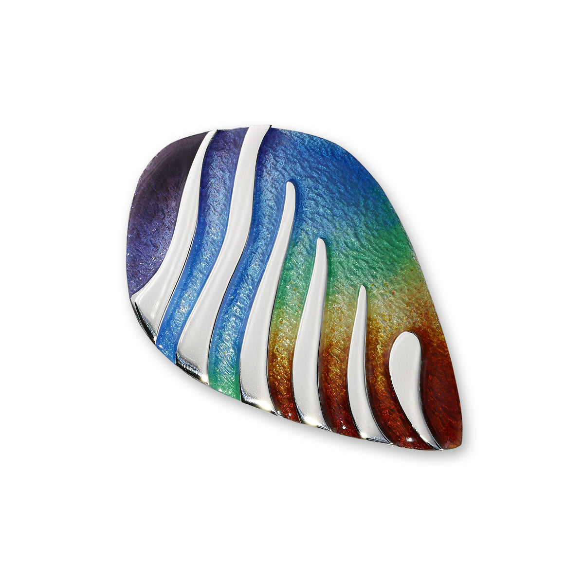 This eye catching brooch is created using edge to edge enamelling on polished sterling silver, enhanced with various glass enamel colourways.