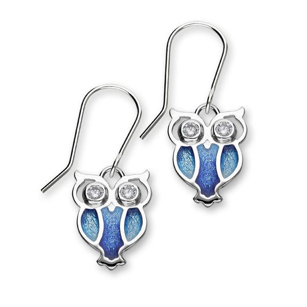 Nature in Flight Sterling Silver & Cubic Zirconia Enamel Owl Drop Earrings, ECE25