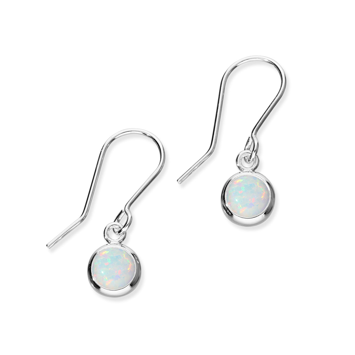These simple plain drop earrings from the 'Harlequin' collection are crafted in sterling silver and set with vibrant white opal stones.