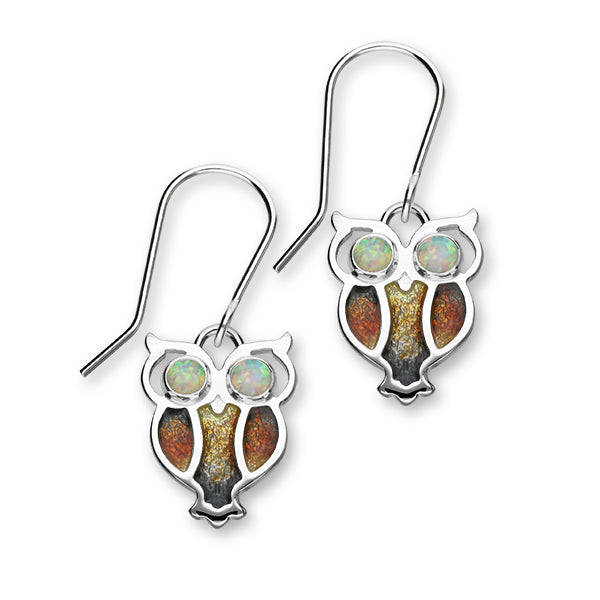 Nature in Flight Sterling Silver & Opal Enamel Owl Drop Earrings, ESE28