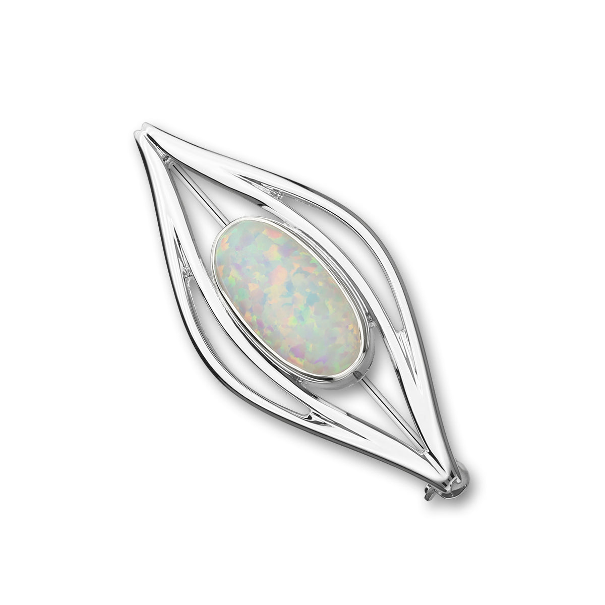 This elegant style brooch from the 'Sahara Sunset' collection is available in Sterling Silver and set with a created White Opal.