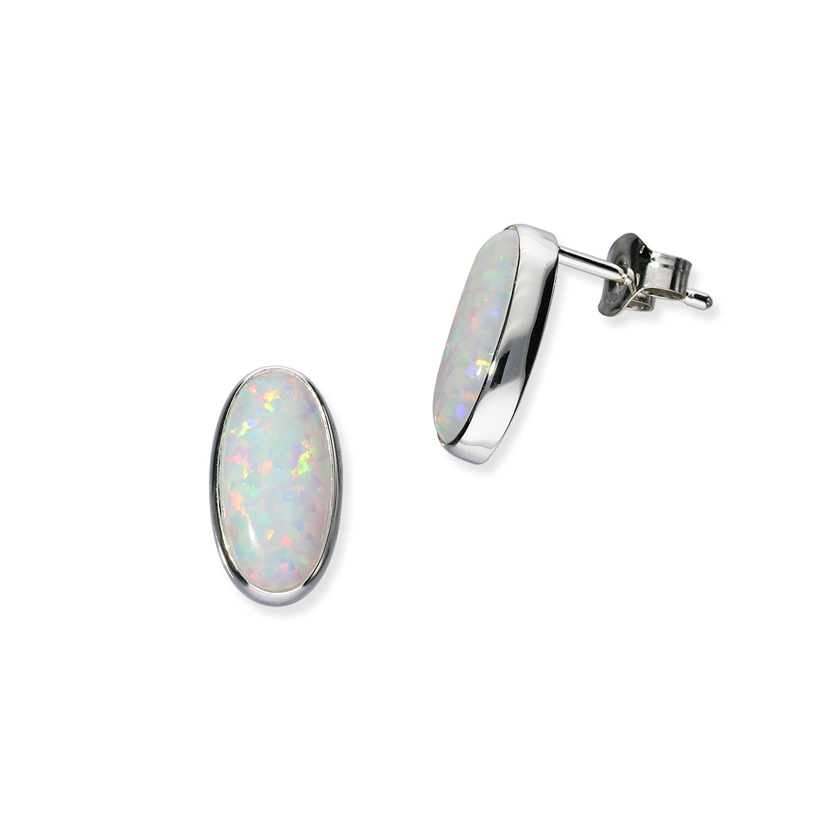 These sophisticated stud earrings are crafted in sterling silver and set with eye-catching created White Opal stones.
