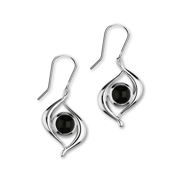 Retro Sterling Silver & Black Onyx Drop Earrings, SE293