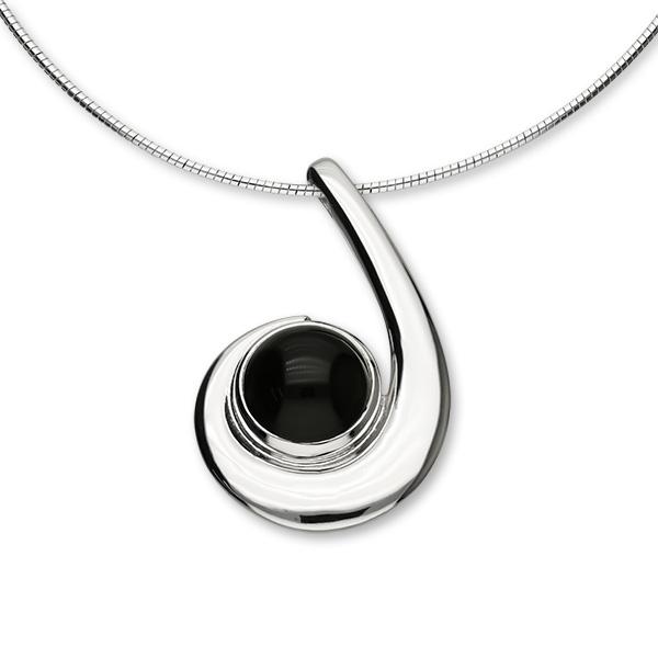A decorative loop designed pendant from our 'Carnaby' collection, crafted in highly polished sterling silver and handset with a bold black onyx stone.