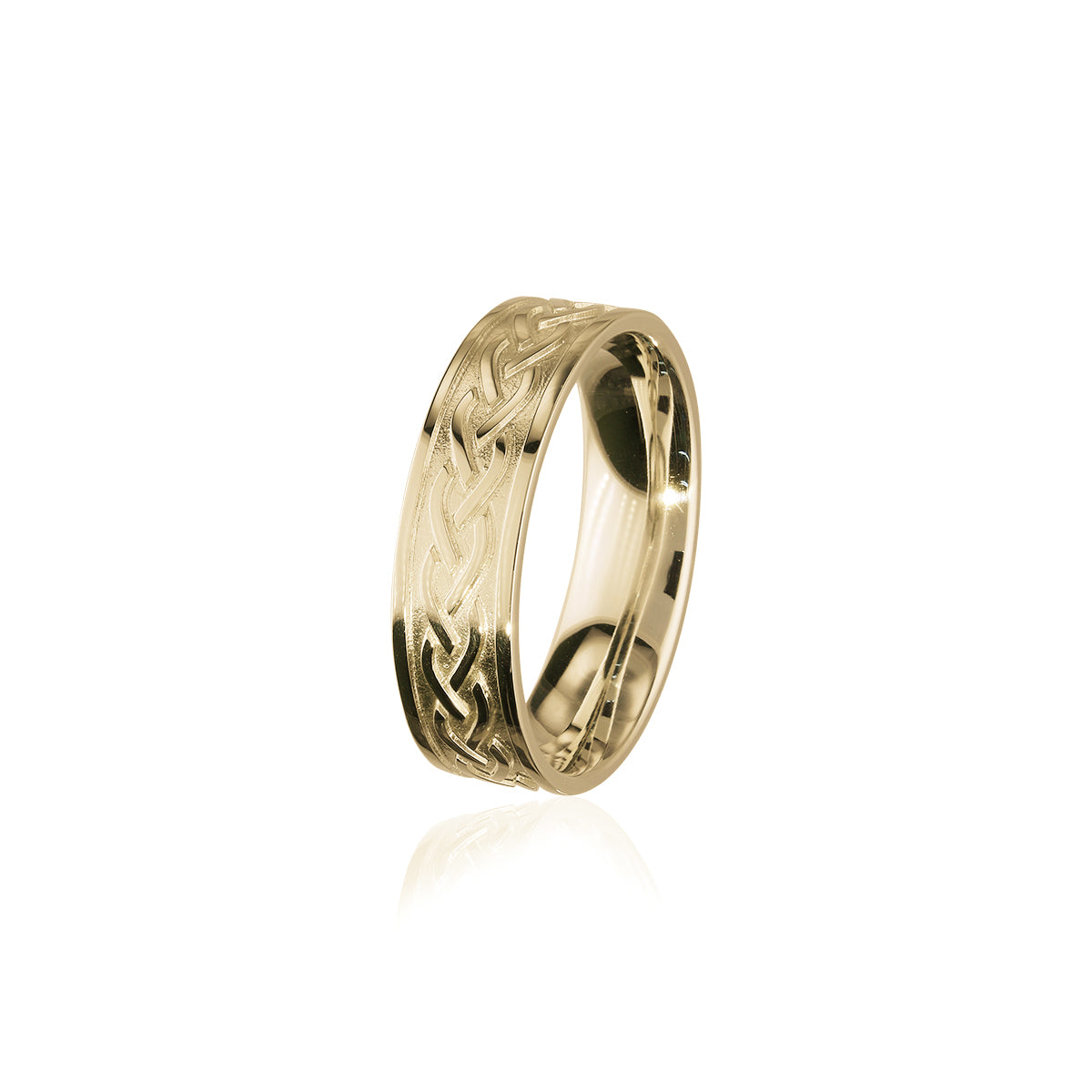 This beautiful 9ct gold ring is influenced by the work of Celtic craftsmen, whose well - recognized knot patterns have come to symbolize the hope of eternal life.