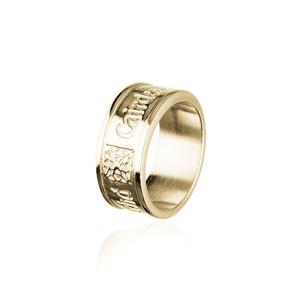 The Gaelic words for love, loyalty and friendship are inscribed around this beautiful designer ring.