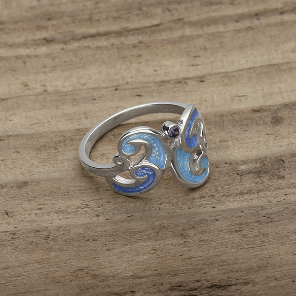 A Sterling Silver elegant ring, complemented with hot glass enamel and set with a cubic zirconia stone.