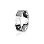 Love, loyalty, friendship inscribed in ancient runes wind around these simple polished bands.