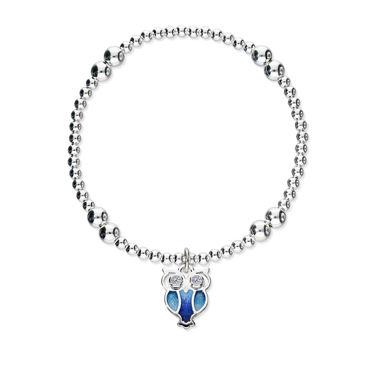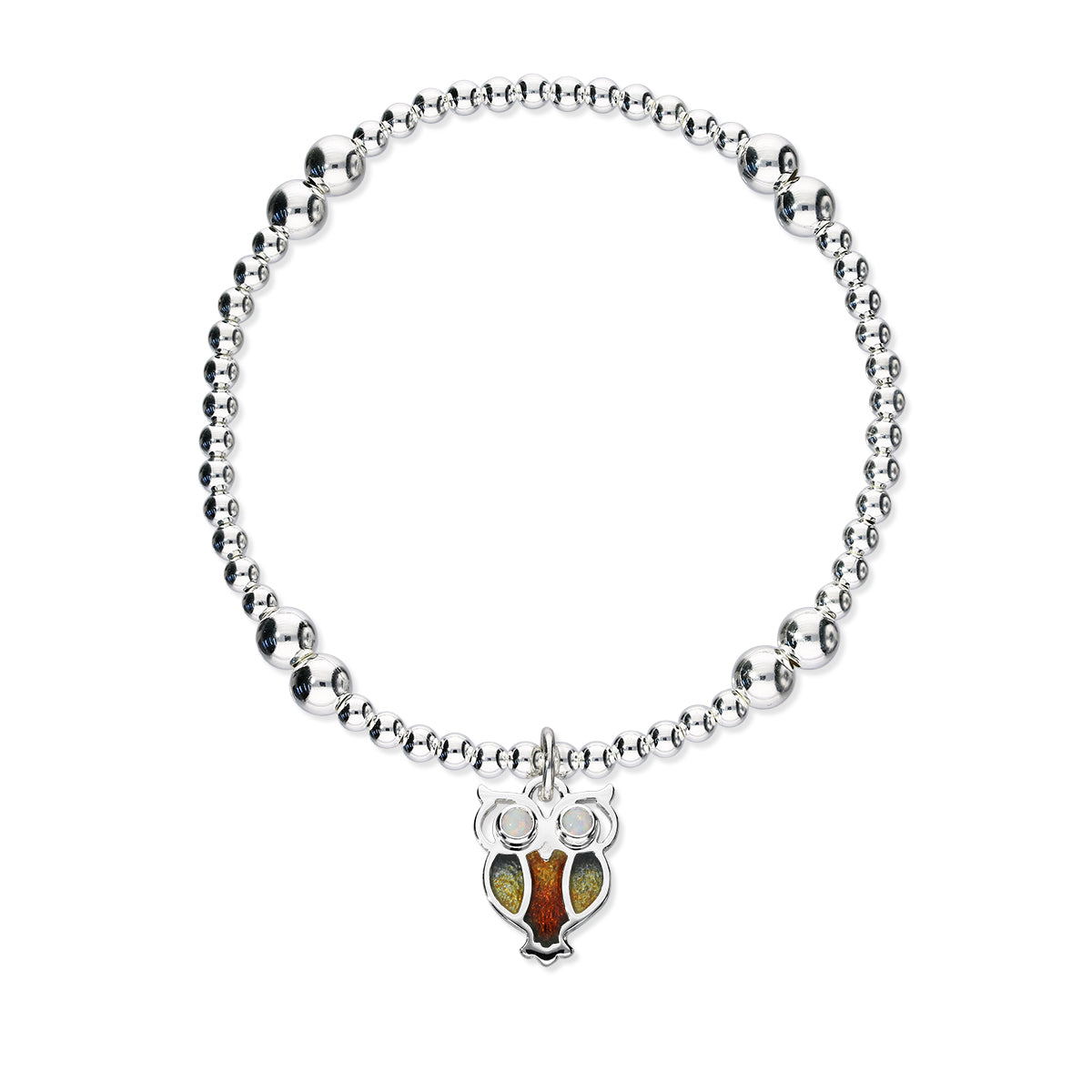 This stretchy bracelet features a sterling silver Nature in Flight owl charm. Available in two different enamel colourways and set with cubic zirconia stones. Stylish and versatile, these silver stretchy bracelets are adorned with beautifully detailed Ortak charms. Comfortable to wear and easy to style, they’re perfect for layering or wearing alone for a simple, elegant statement.