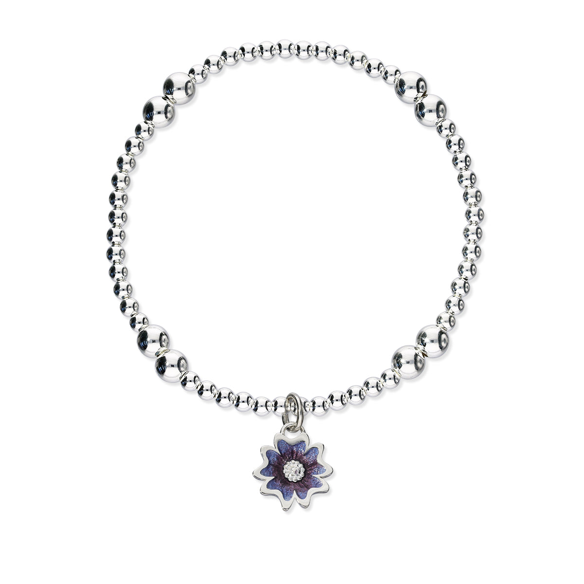 This Primrose stretchy bracelet features our sterling silver Scottish Primrose charm in vibrant purple enamel. Stylish and versatile, these silver stretchy bracelets are adorned with beautifully detailed Ortak charms. Comfortable to wear and easy to style, they’re perfect for layering or wearing alone for a simple, elegant statement.