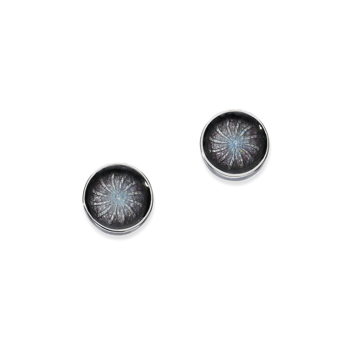 These circular stud earrings are crafted in sterling silver, the spiral textured background is enhanced with the beauty of the hand enamelling in various colourways.
