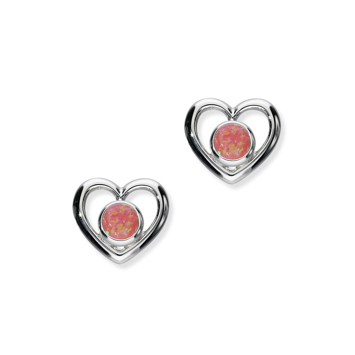 Harlequin Sterling Silver & Opal Heart Stud Earrings, SE357